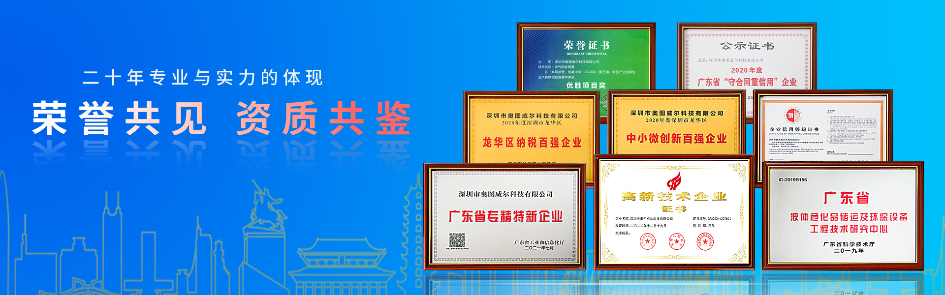 深圳市奧圖威爾科技有限公司創立于2003年。公司總部座落于全球極具經濟與創新活力的粵港澳大灣區核心城市—深圳,是國家級高新技術企業、廣東省專精特新企業、龍華區中小企業納稅百強企業、龍華區中小企業創新百強企業,并被認定為廣東省?;分悄軆\及環保設備技術研究中心、深圳市兩化融合貫標企業。